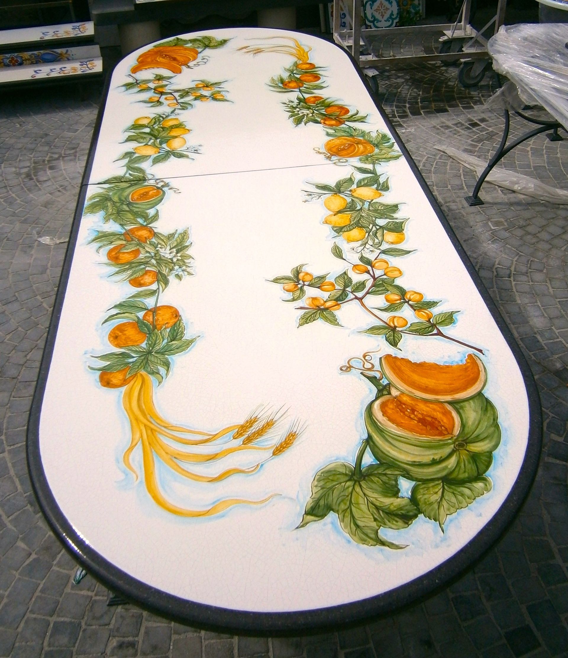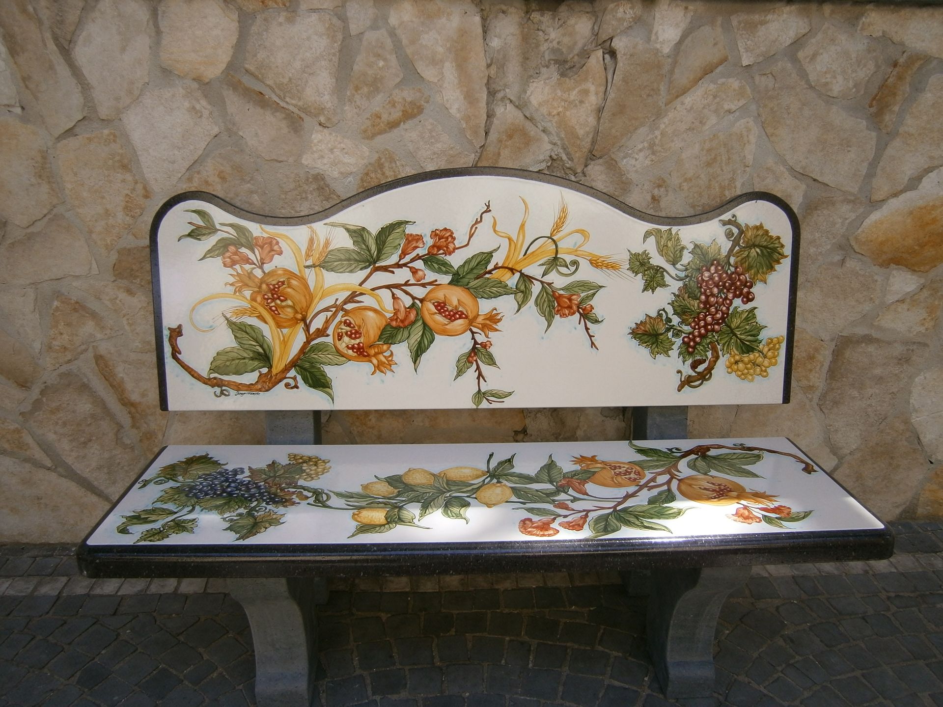 Il substrato pietroso è ricoperto da uno strato di smalto ceramico, dello spessore di circa 3 millimetri, che viene lasciato asciugare per almeno 12 ore. A questo punto si passa alla decorazione vera e propria, la quale viene realizzata secondo diverse tecniche di arte ceramica. L’ultima fase è la cottura, che avviene intorno ai 1000 gradi.